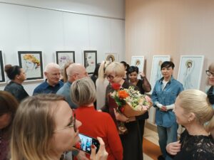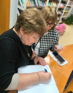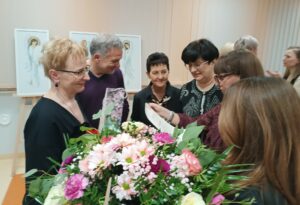 Wernisaż stał się także okazją do rozmów, spotkań i wymiany wrażeń. Goście chętnie oglądali prace, rozmawiali z artystkami oraz wpisywali swoje refleksje do bibliotecznej kroniki. Wydarzenie po raz kolejny potwierdziło, że biblioteka jest nie tylko miejscem pracy z książką i informacją, lecz również przestrzenią prezentacji pasji osób związanych z oświatą oraz ważnym punktem na mapie życia kulturalnego lokalnej społeczności.
