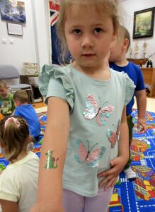 Prawdziwym hitem był pobyt w „salonie tatuażu”. Każde z dzieci dostało wyjątkowy i niepowtarzalny smoczy tatuaż. W oczekiwaniu na swą kolej przedszkolaki obejrzały pokaźny zbiór książek poświęconych tym legendarnym istotom i wzięły udział w zabawie „Smok i Pies”.