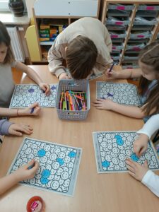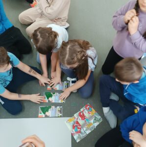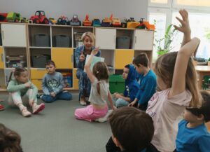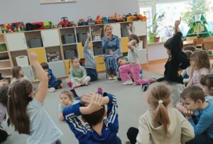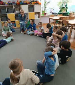Zajęcia uzupełniły ćwiczenia ruchowe i naśladowcze, pozwalające wyrazić emocje poprzez gest, mimikę i postawę ciała. Spotkanie przebiegało w atmosferze uważności i zaangażowania, a różnorodność zastosowanych metod umożliwiła każdemu dziecku aktywne uczestnictwo.