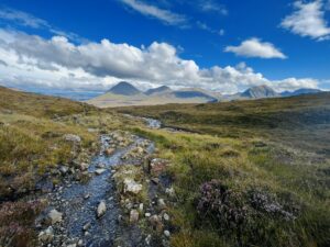 Góry Cuillin – słynne pasmo górskie przyciąga wspinaczy i turystów z całego świata. Najwyższy szczyt, Sgùrr Alasdair, ma 993 m n.p.m..