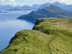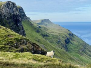 3) Quiraing – niezwykły krajobraz górski, pełen dramatycznych klifów i zielonych dolin, świetny na piesze wędrówki.