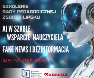 Takie pytania towarzyszyły szkoleniu, które odbyło się 14 stycznia 2026 r. w Zespole Szkół Ogólnokształcących i Technicznych w Lipsku. Spotkanie poświęcono wykorzystaniu sztucznej inteligencji w pracy nauczyciela oraz zagadnieniom fake newsów i dezinformacji. Było ono kolejnym elementem działań wspierających rozwój kompetencji cyfrowych i medialnych nauczycieli powiatu lipskiego prowadzonych przez Bibliotekę Pedagogiczną Radomiu Filię w Lipsku.