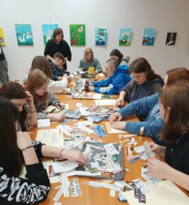 Warsztaty „Cięte słowa” udowodniły, że język może być doskonałym narzędziem wyrażania siebie i świetnym sposobem na twórczą zabawę. Każdy uczestnik miał okazję stworzyć coś wyjątkowego, a powstałe kolaże pokazały, jak wiele radości może przynieść swobodne eksperymentowanie ze słowem.