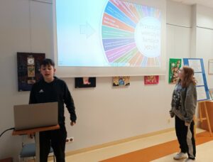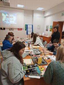 Spotkanie rozpoczęło się od językowych łamańców, które dostarczyły uczestnikom zarówno śmiechu, jak i treningu dykcji. Następnie młodzież mierzyła się z zagadkami językowymi – odgadywała przysłowia na podstawie ilustracji wygenerowanych przez sztuczną inteligencję. Ta innowacyjna forma nauki wprowadziła dodatkowy element zabawy i skłoniła uczestników do kreatywnego myślenia.