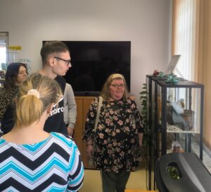 Zaczęliśmy od wspólnego zwiedzania biblioteki. Jak zawsze największe emocje wzbudziły nasze „biblioteczne zwierzaki” – patyczaki i żółwica Kazia. Dużym zainteresowaniem cieszyła się także wystawa kogutków i dwojaczków z kolekcji Ewy Magdziak-Rogali. Kolorowe, różnorodne eksponaty przyciągały wzrok i zachęcały do rozmów – nie tylko o tradycji, ale też o tym, jak różne mogą być pasje.